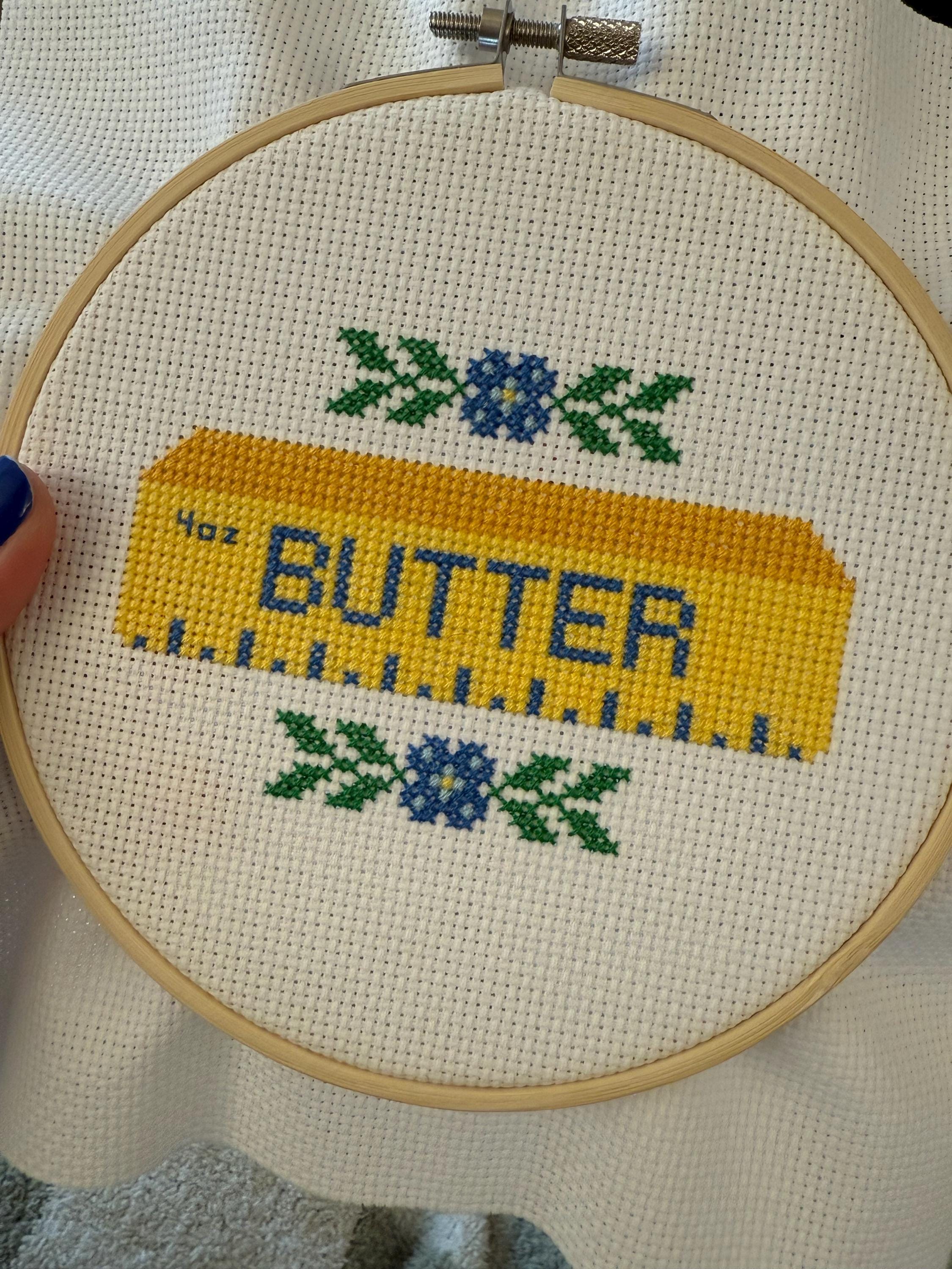 The prettiest butter pattern on the market, imo :) The color choices are so visually appealing it brings me joy to see it come together (I'm making a needlepoint piece rn). I could see this done with pink or even multicolored flowers too!